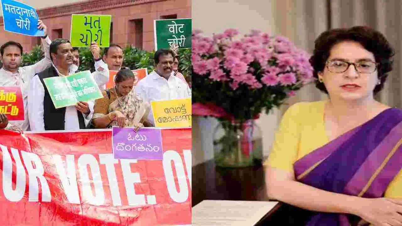 ప్రియాంక గాంధీ సంతకం ప్రచారం: ఓటు దోపిడీకి చెక్ పెడదాం .. సంతకాల సేకరణ ప్రారంభించిన ప్రియాంకా ప్రియాంకా | ప్రియాంక గాంధీ భారతదేశం అంతటా ఓటరు మోసానికి వ్యతిరేకంగా కాంగ్రెస్ సంతకం ప్రచారాన్ని ప్రారంభించారు
